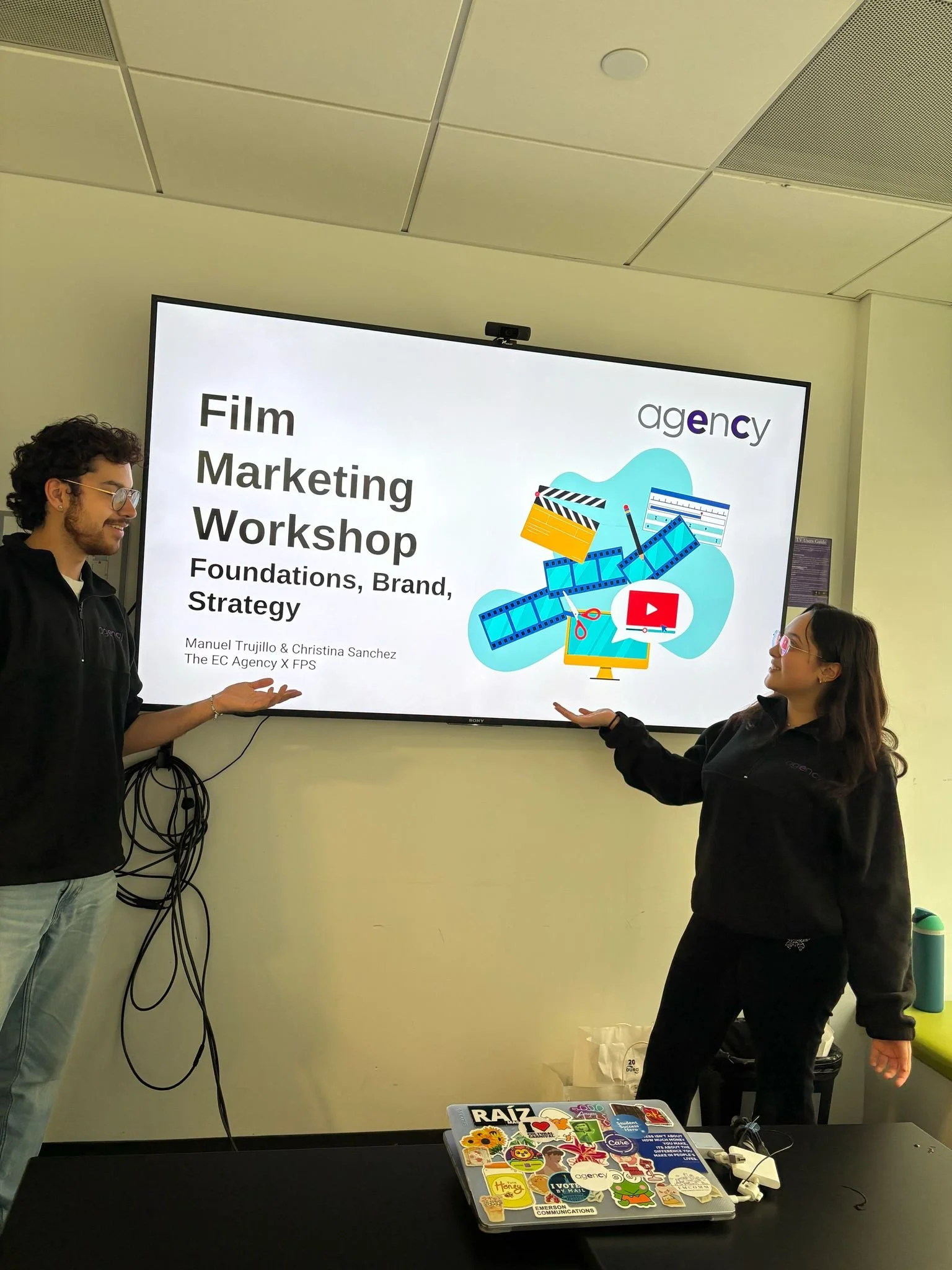 In Spring 2025, we partnered with FPS, an on campus film organization, to host a film marketing workshop. The session focused on guiding film students through transforming their film concepts into marketable brands, building an audience, and driving engagement for their projects.